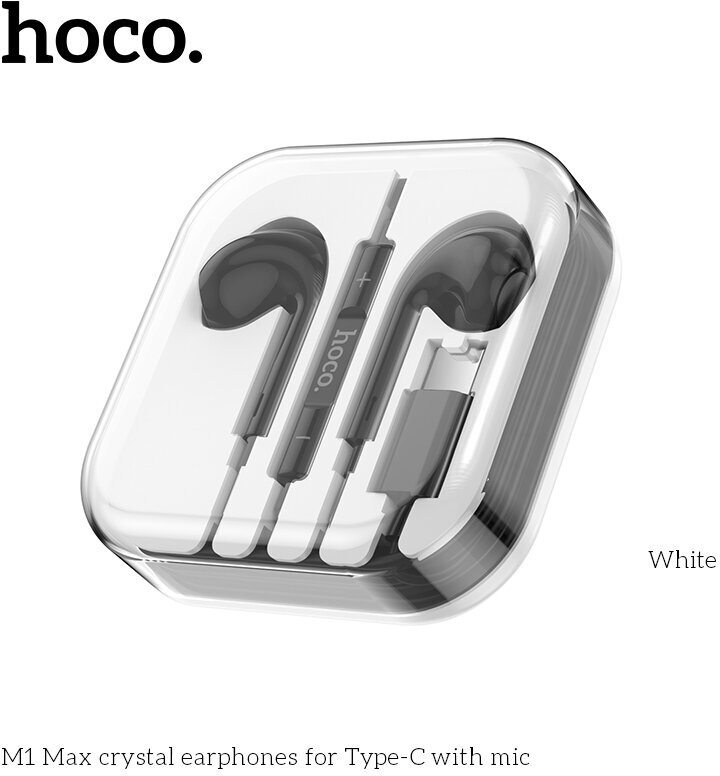 Проводные наушники HOCO M1 Max crystal, Type-C, 1.2 м, белый, контроллер с микрофоном