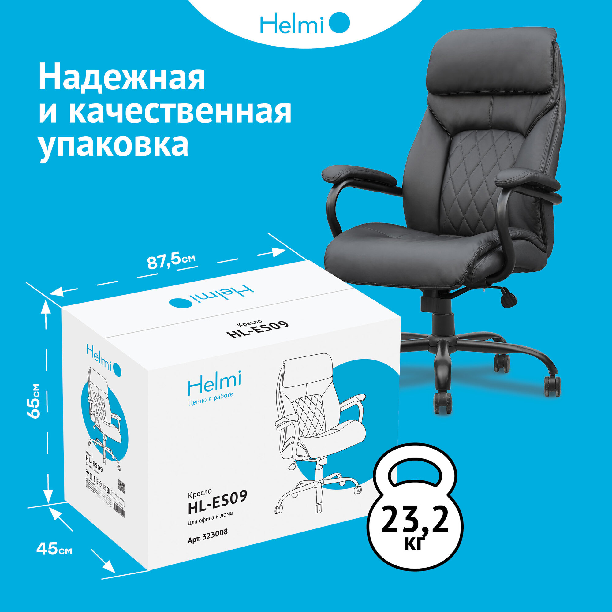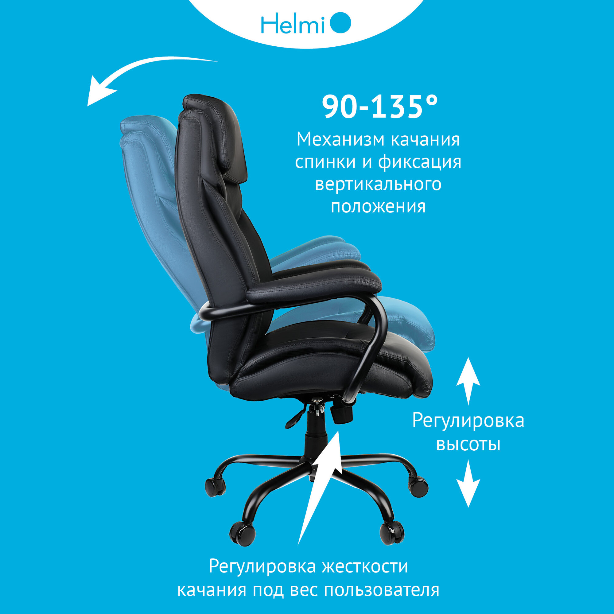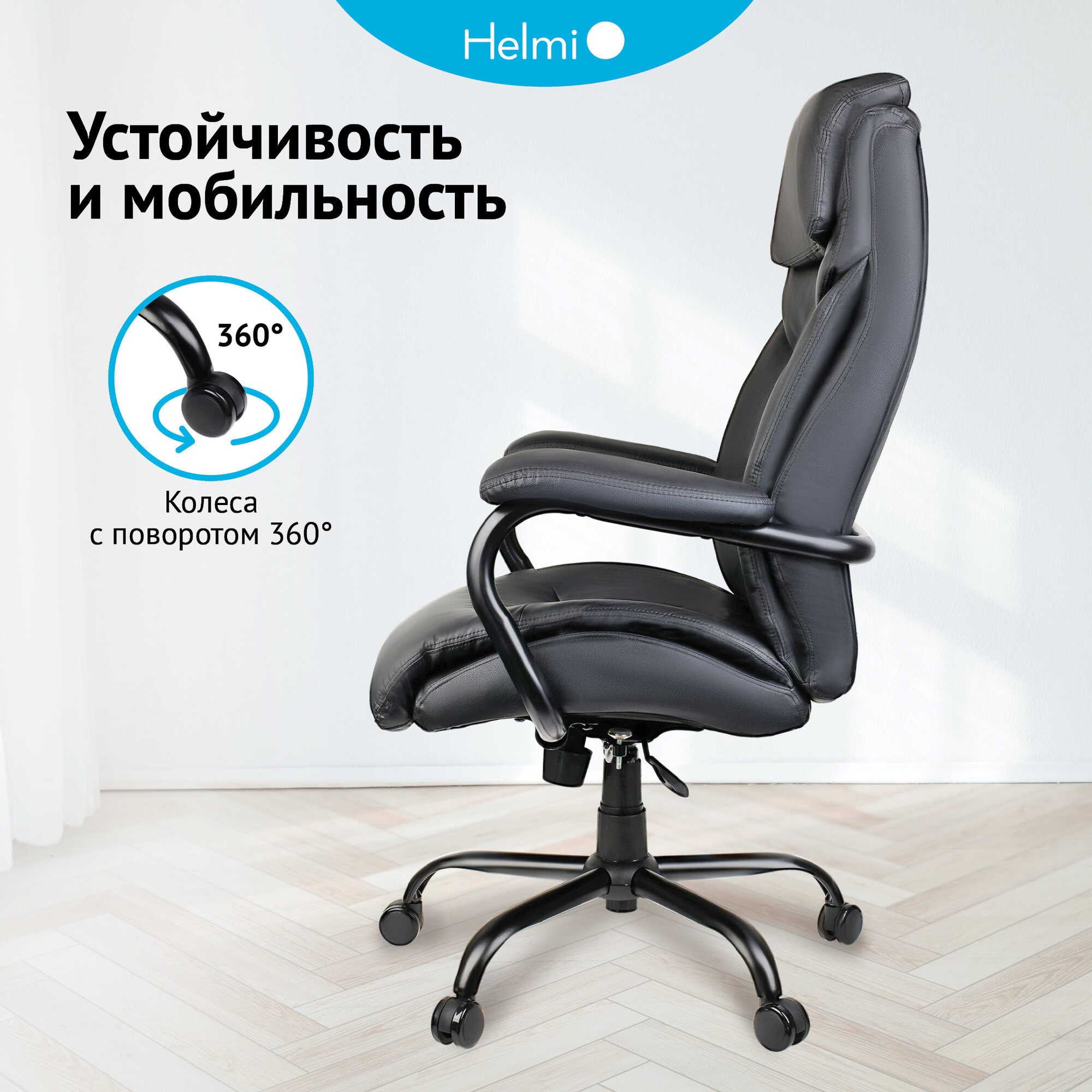 Кресло руководителя Helmi HL-ES09 "Armor", повышенной прочности, экокожа черная, до 250кг интересное: