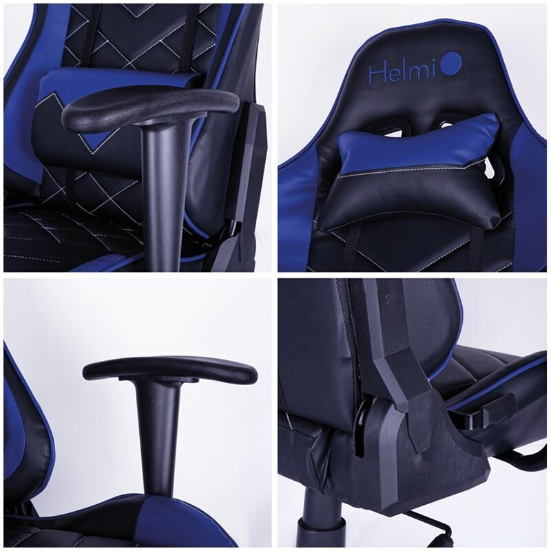 Кресло геймерское Helmi HL-G02 "Grand Prix", экокожа, черная/синяя, 2 подушки