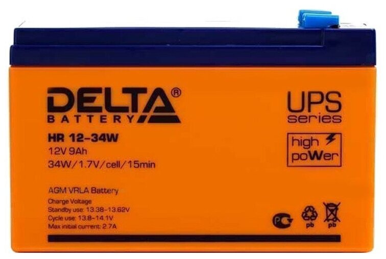 Аккумуляторная батарея DELTA для ИБП любых торговых марок, 12 В, 9 Ач, 151х65х94 мм, HR 12-34 W