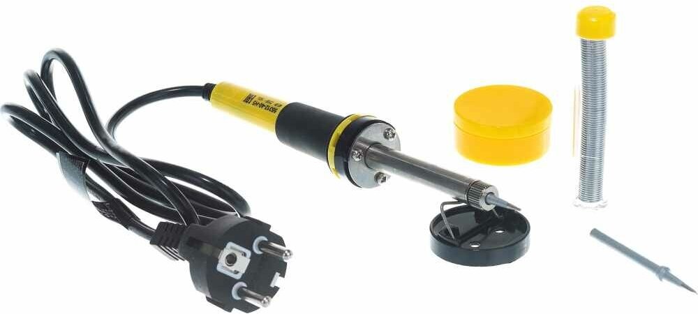 Набор для паяльных работ STAYER 40Вт с 2К рукояткой, конус, подставка+припой+сменное жало+канифоль, (55312-40-H5)