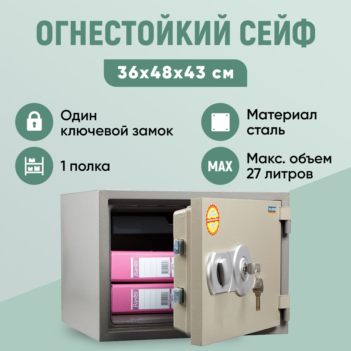 Огнестойкий сейф VALBERG FRS-36 KL с ключевым замком, Огнестойкость - 60Б, 360x480x430 мм