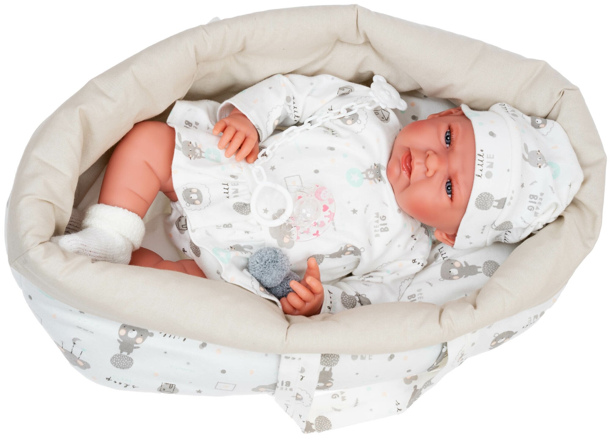 | Комплектация | кукла, шапка, платье, штанишки, носки, переноска, подушка, соска |
