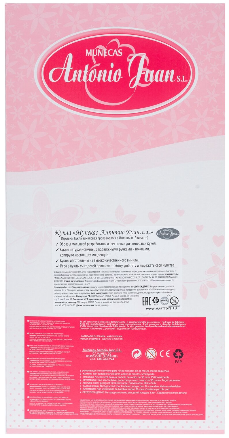 Кукла пупс Antonio Juan Круз в розовом 42 см виниловая