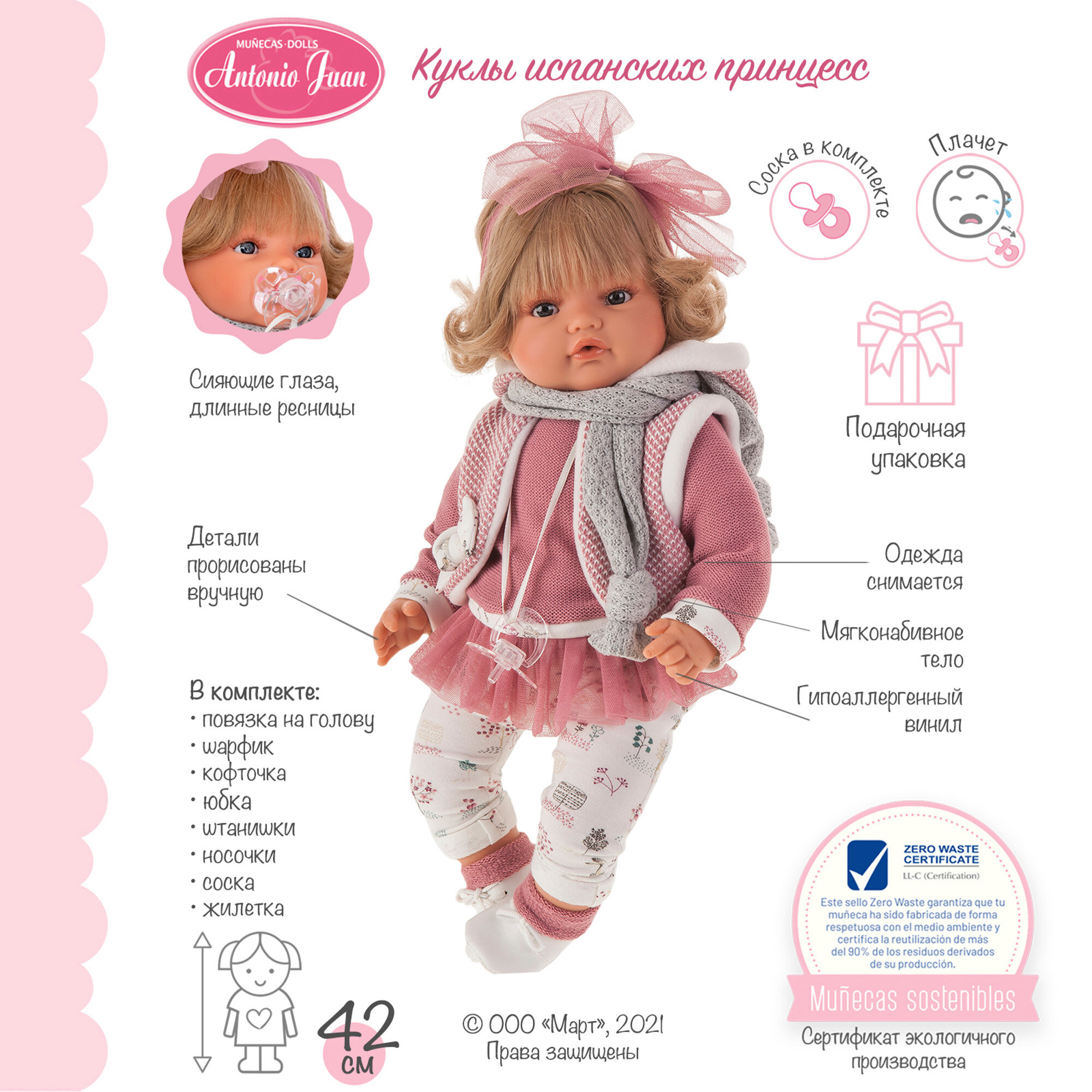 Кукла Лорена в розовом озвученная, 42 см Munecas Antonio Juan интересное: