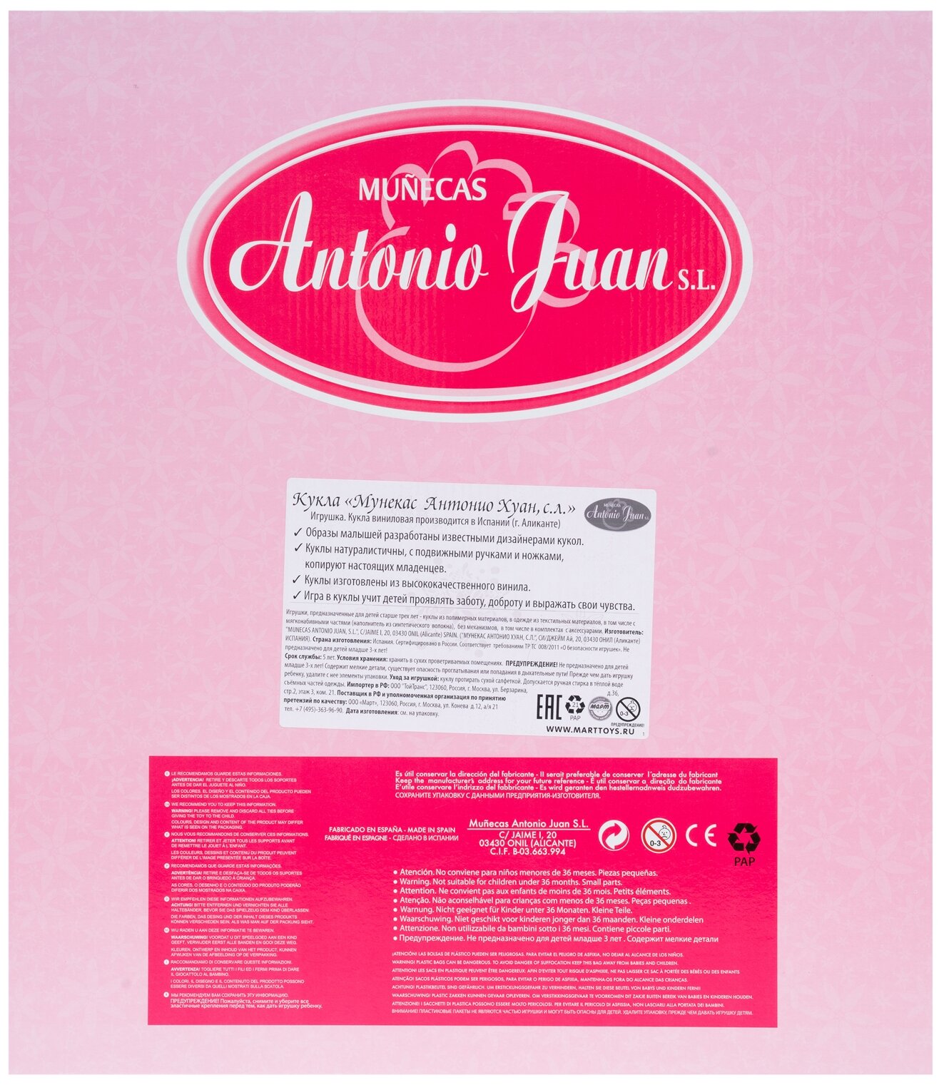 | Дополнительная информация | куклу протирать сухой салфеткой. Допускается ручная стирка в тёплой воде съёмных частей одежды |