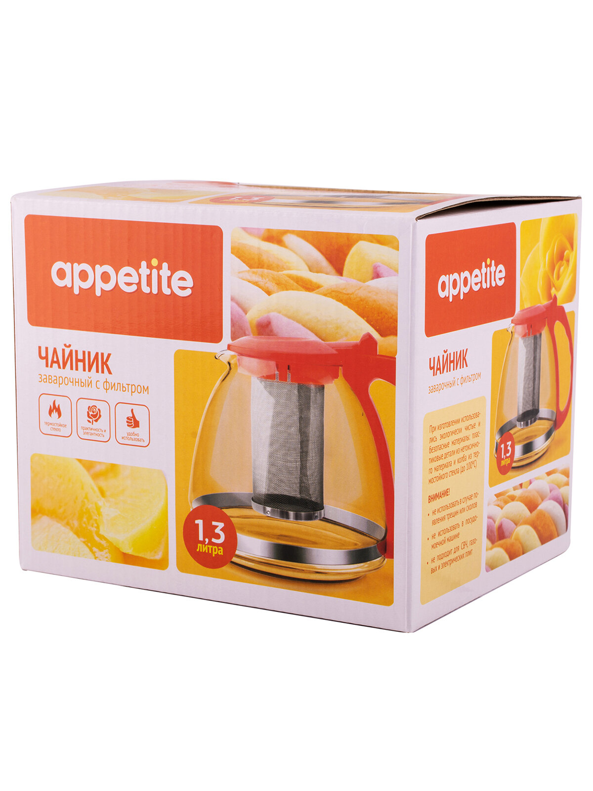 Чайник заварочный Appetite стеклянный с фильтром 1,3л красный F8130 интересное: