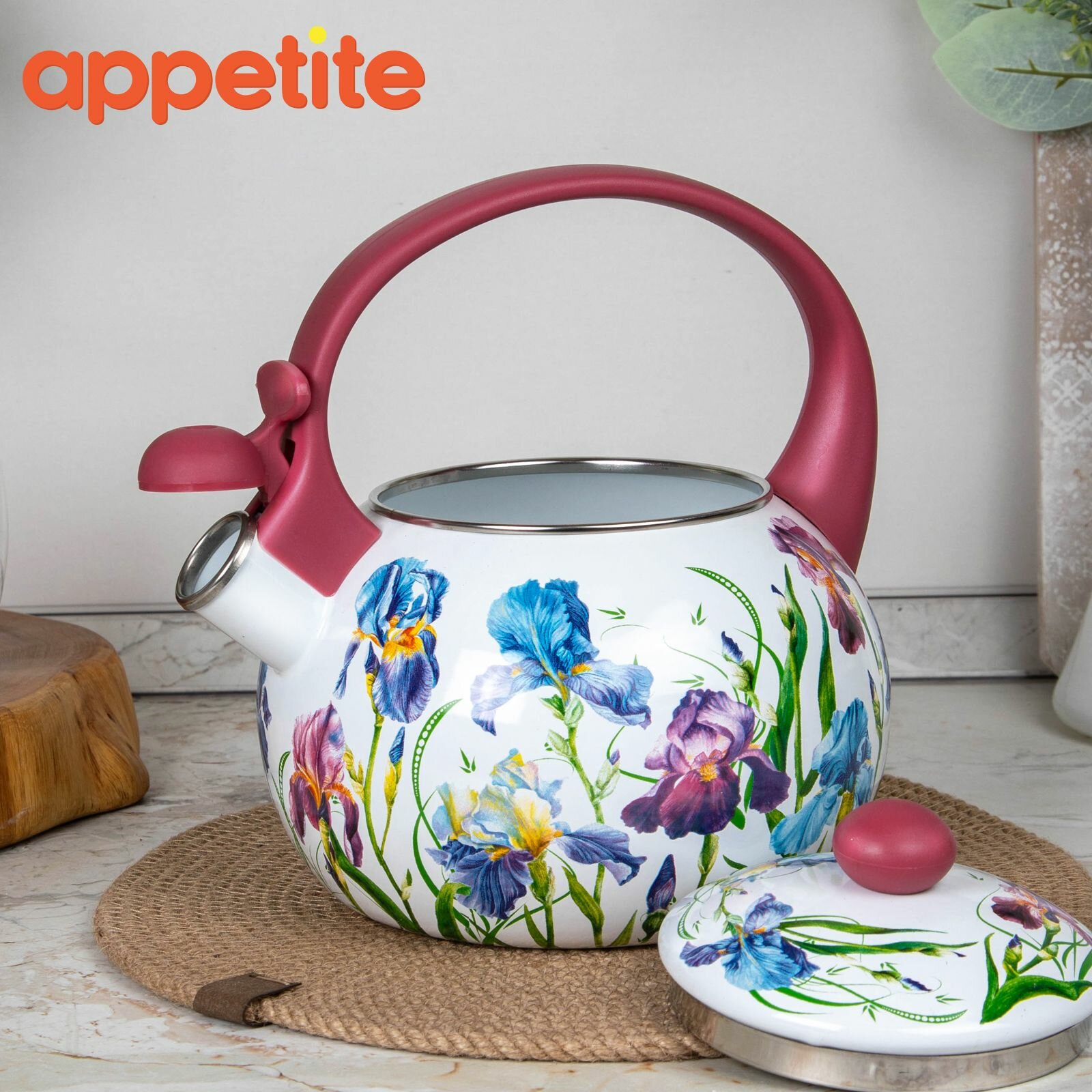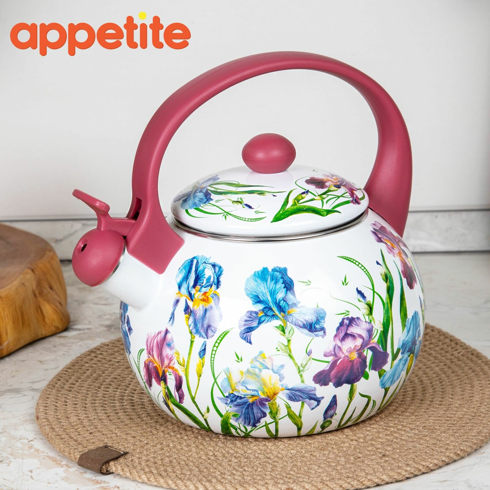 Чайник сталь, эмал, 2 л, свист, Appetite, Ирисы, FT7-IR