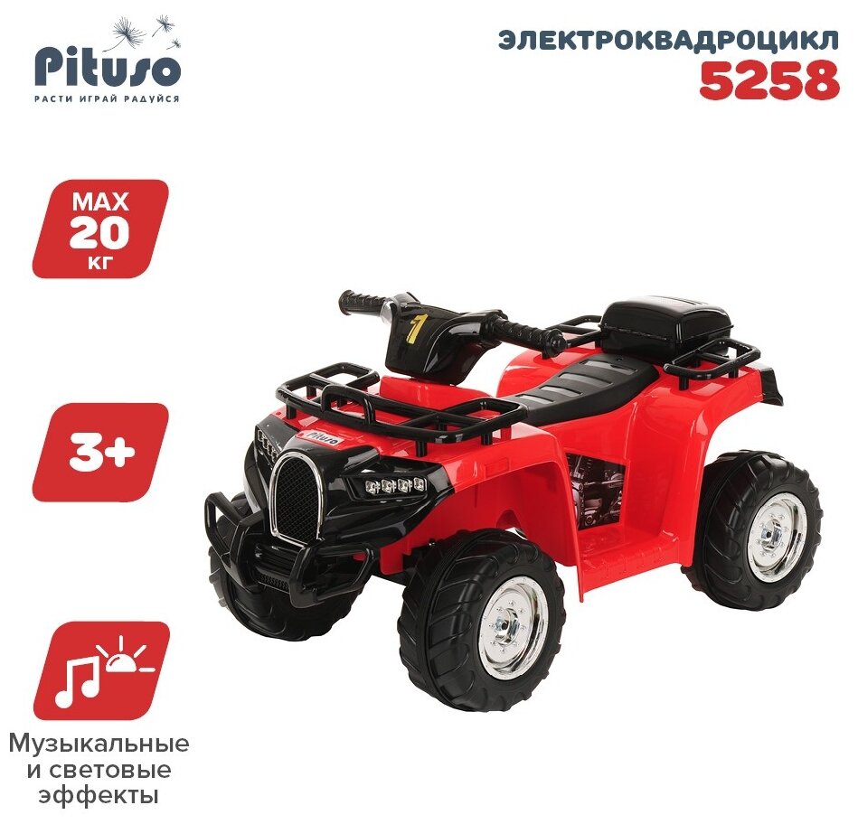 Электромобиль детский, квадроцикл Pituso "5258 Red", 6V/4.5Ah,20W*1, дисплей, МР3 порт, USB, цвет красный, машина для детей на аккумуляторе, свет, звук