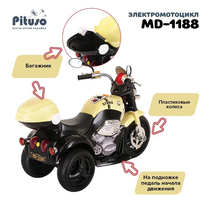 Электромотоцикл Pituso MD-1188 черно-бежевый