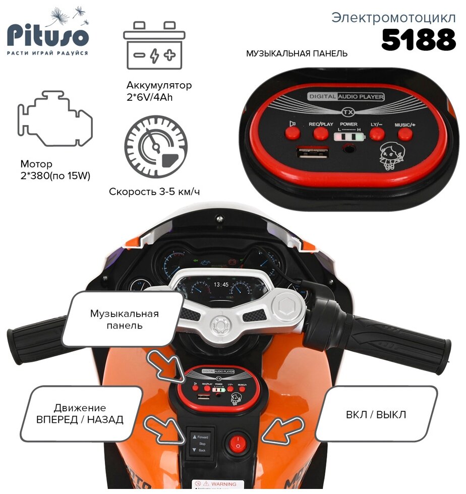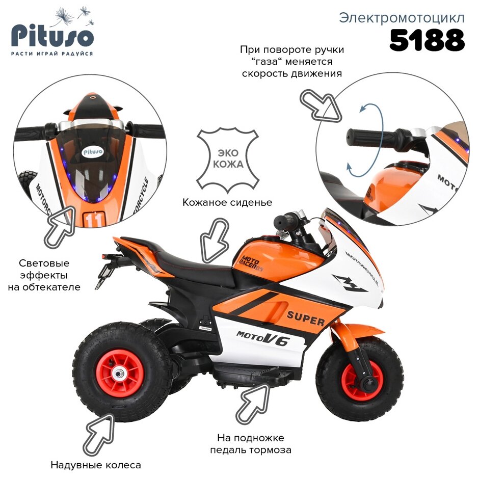 Купить Детский электро-мотоцикл Pituso 6V, 5188 надувные колеса Бело-оранжевый Детский электромотоцикл электроквадроцикл детский электро-трицикл электромобиль подарок для детей для мальчиков для девочек