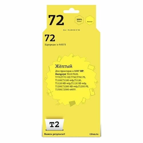 IC-H9373 Картридж T2 № 72 для HP Designjet T610/T620/T770/T770 HD/T790/T790 PS/T1100/T1100 mfp/T1120/T1120 HD mfp/T1120 SD mfp/T1200/T1200 HD mfp/T1200 PS/T1300/T2300 eMFP, желтый