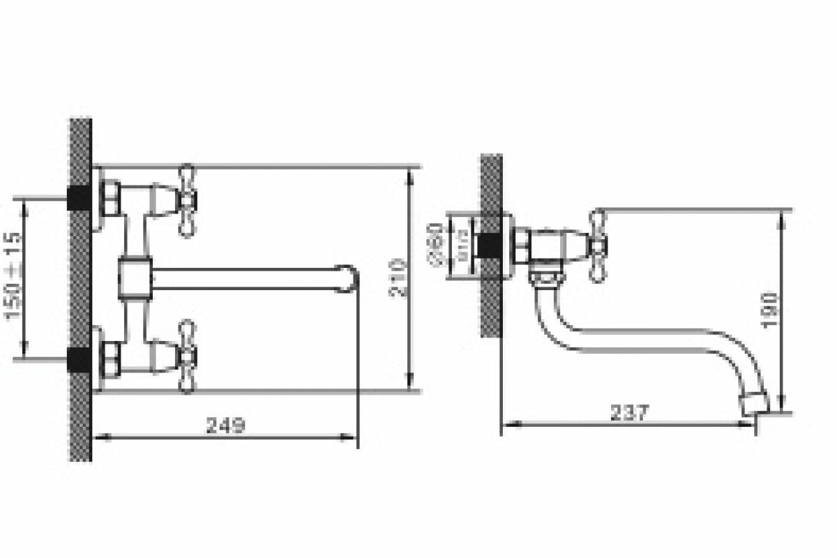 Купить Эверест Смеситель для кухни настенный (Zn) трубчатый излив 280мм,двухвент,кран-буксы1/2,хром,B46-351