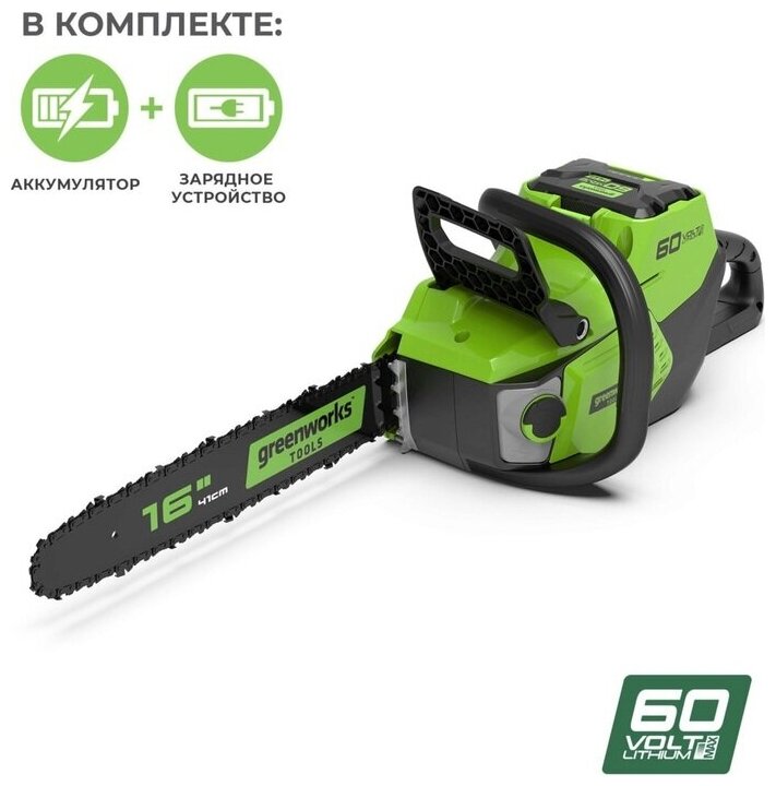 Цепная пила аккумуляторная GreenWorks GD60CS40K4, 60V, 40 см, бесщеточная, с 1хАКБ 4 А. ч. и ЗУ 2006907UB