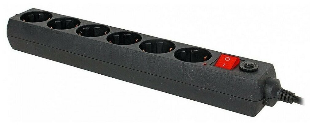 Сетевой фильтр BURO 600SH-1.8-B черный, 6гн, 1,8м, выключатель
