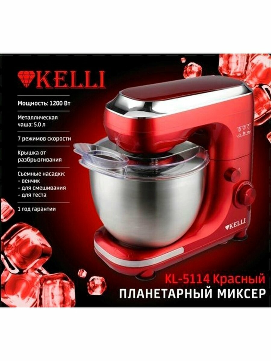 Купить Миксер планетарный Kelli KL-5114, красный