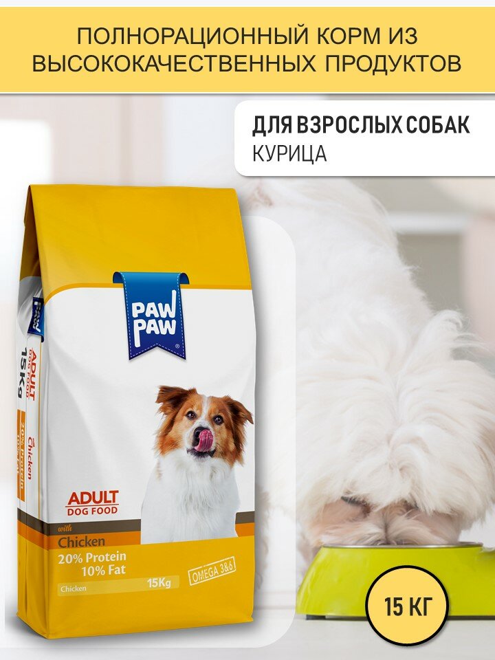 Pawpaw Adult Dog Food with Chicken 15 кг сухой корм для собак с курицей интересное: