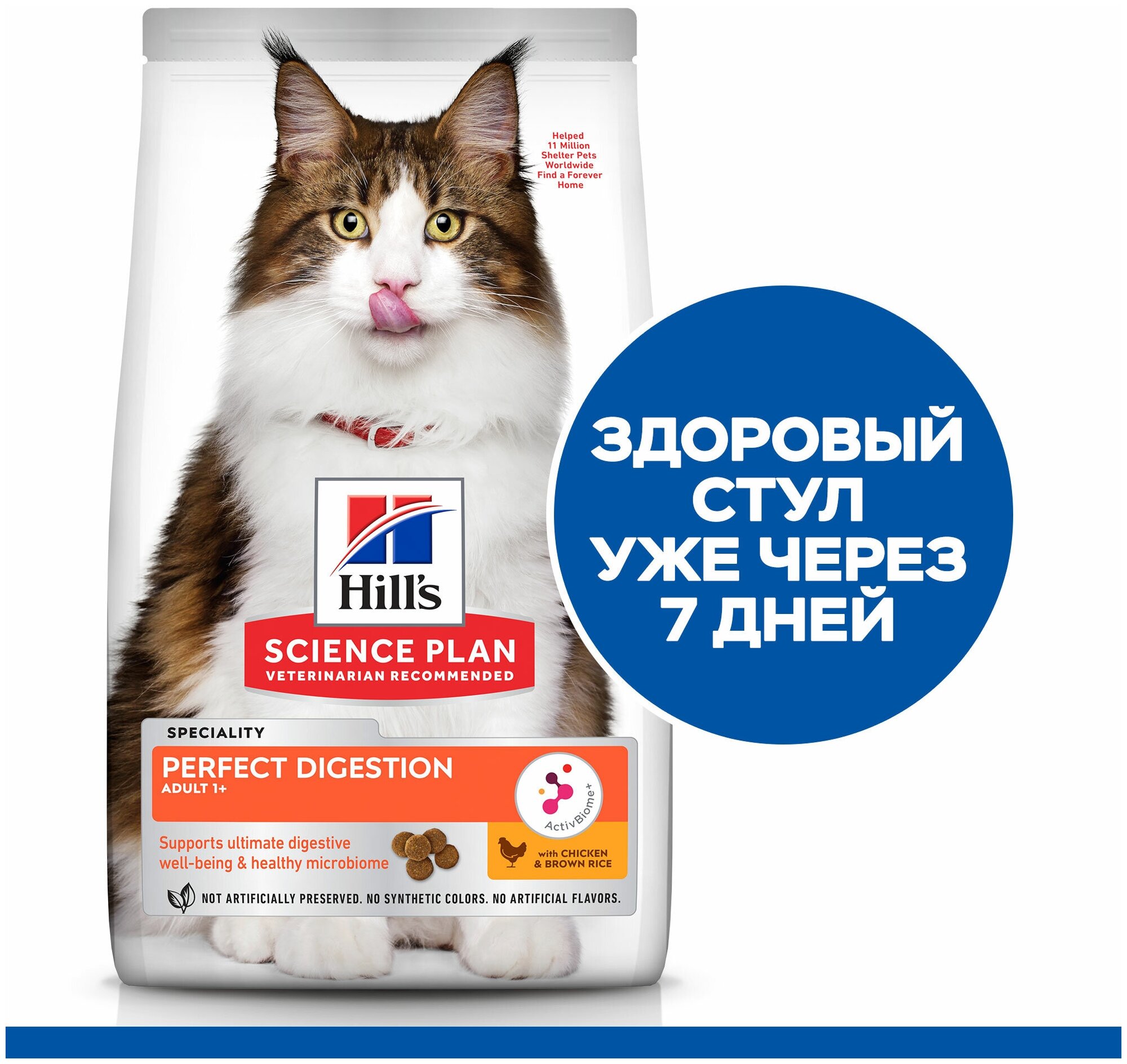 HILL'S SCIENCE PLAN PERFECT DIGESTION ADULT BIOME для взрослых кошек для поддержания здоровья пищеварительной системы с курицей и рисом (1,5 кг)