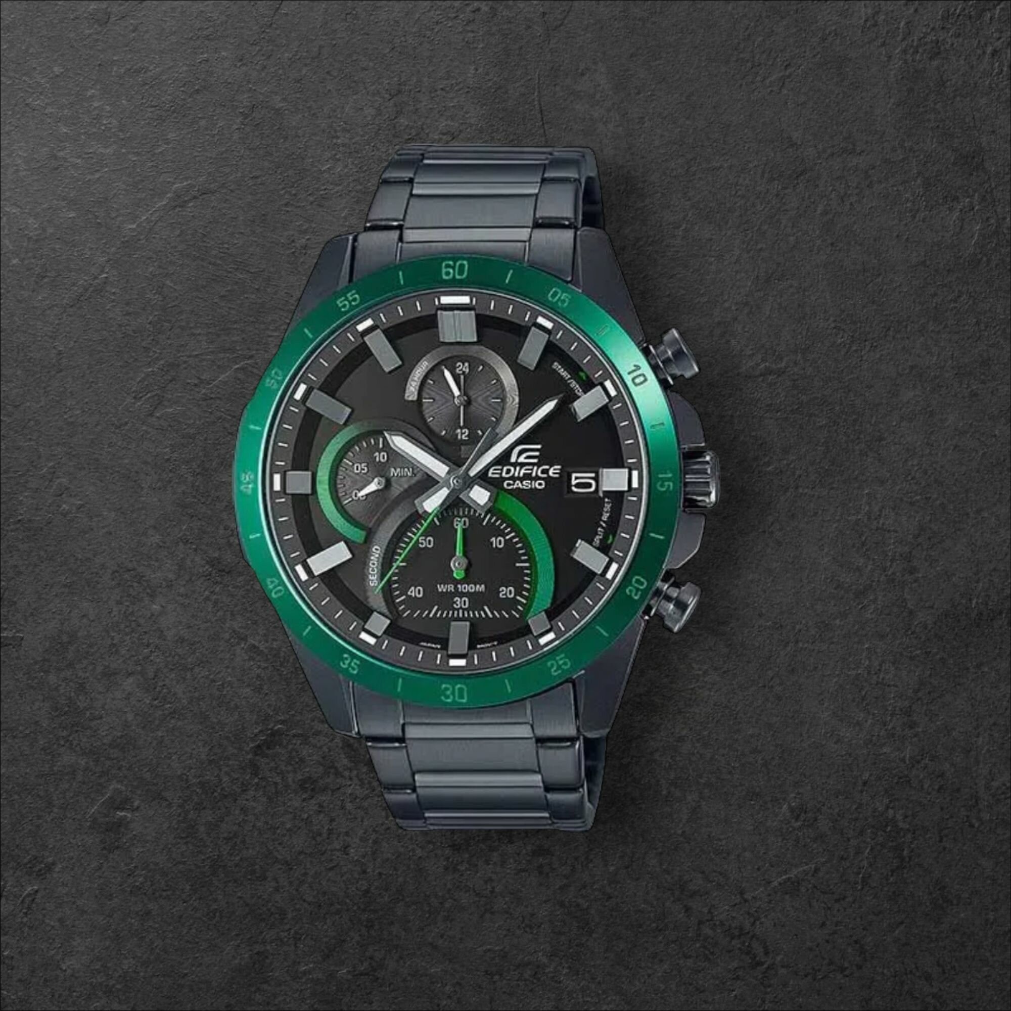 EFR-571DC-1A Casio наручные часы кварцевые WR100 (10 атм) мужские черный отображение числа подсветка стрелок минеральное стекло