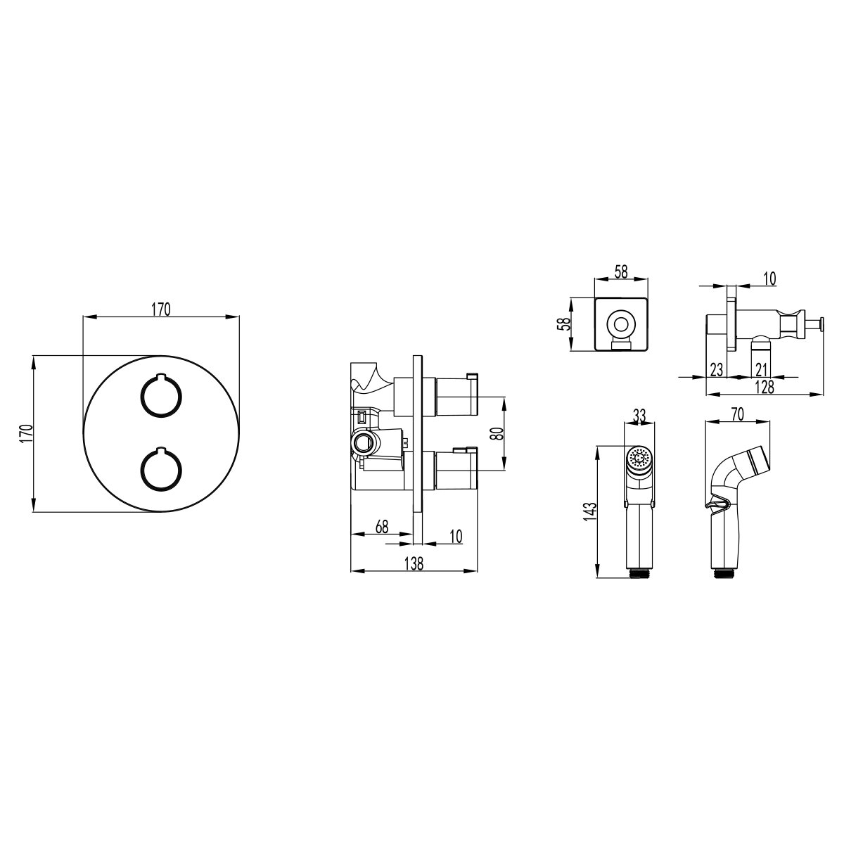 Yeti Смеситель термостатический с гигиеническим душем встраиваемый, LM7819C интересное: