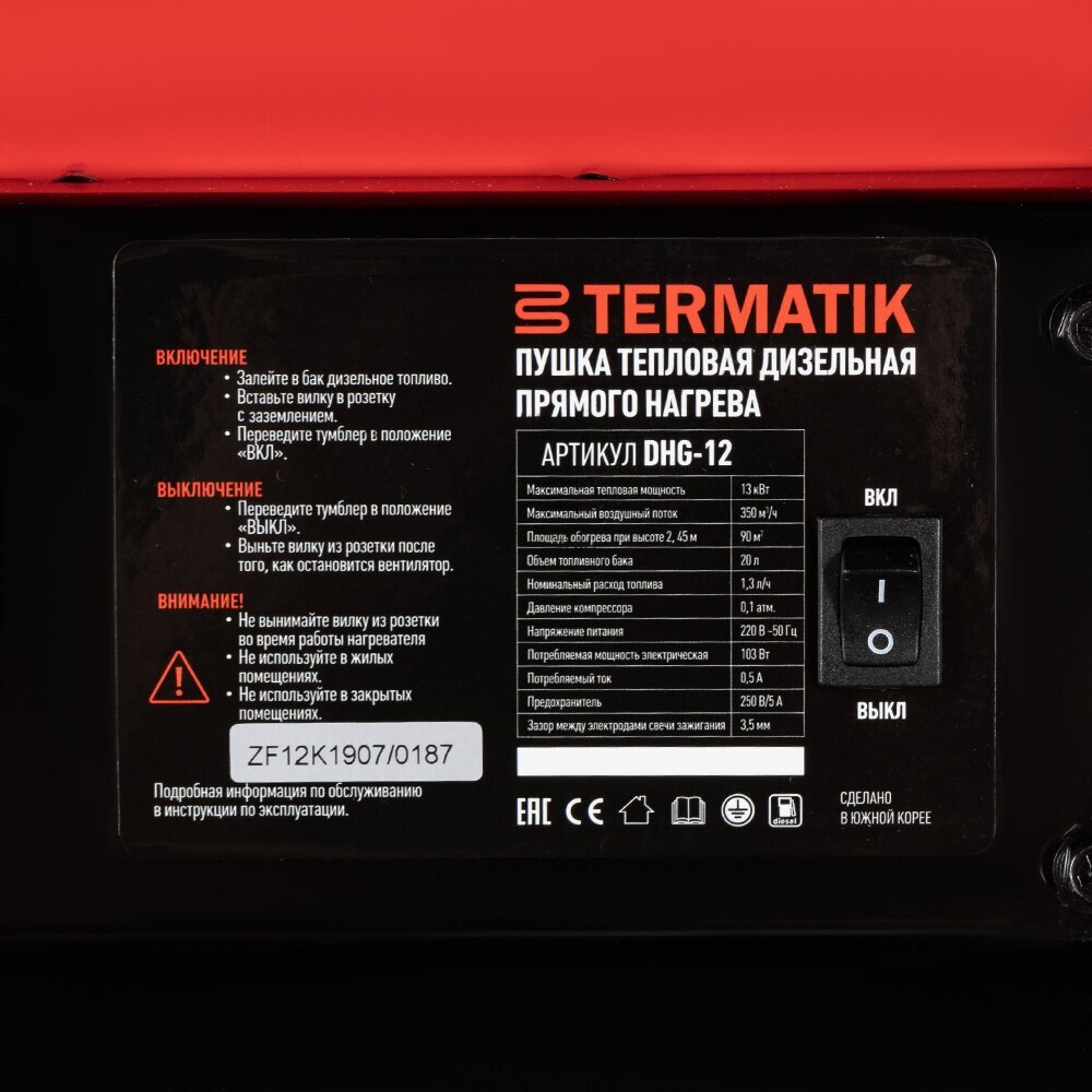 Пушка тепловая дизельная 13 кВт Termatik DHG-12 прямого нагрева интересное: