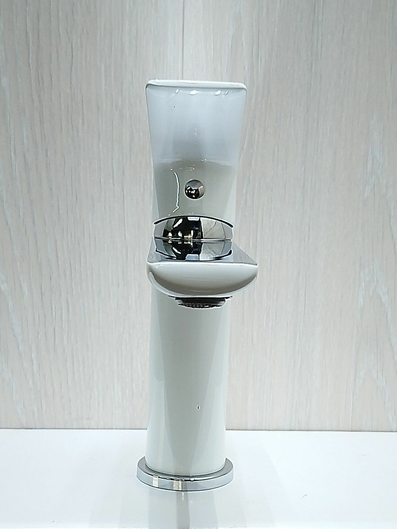 Смеситель для раковины/ умывальника с монолитным изливом (латунь) серия 505 цвет-белый/хром.