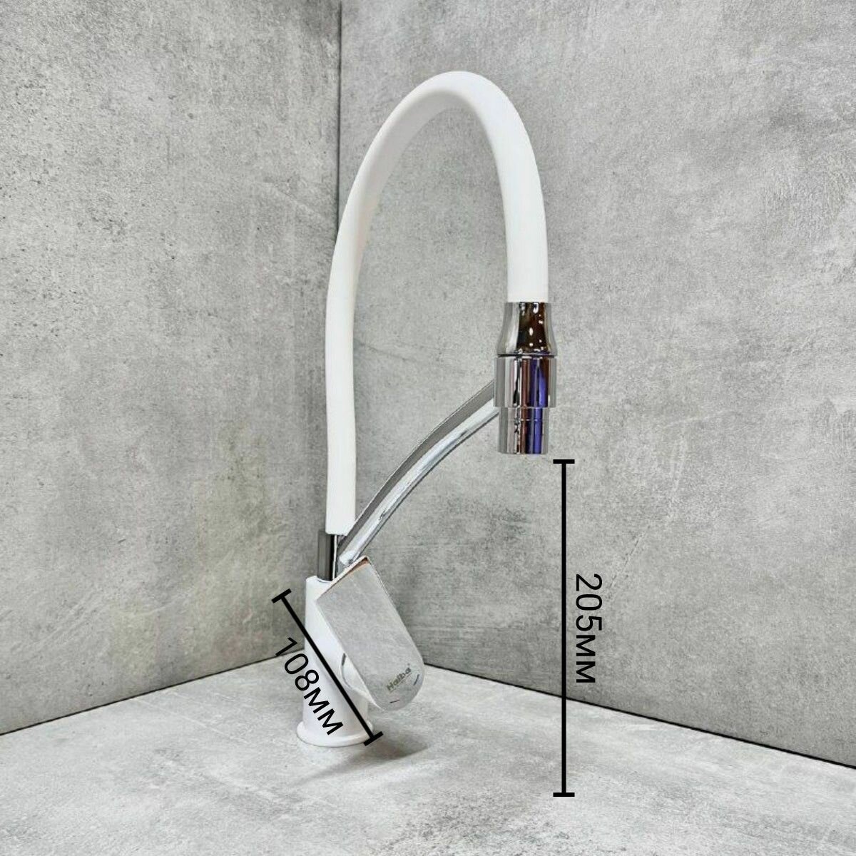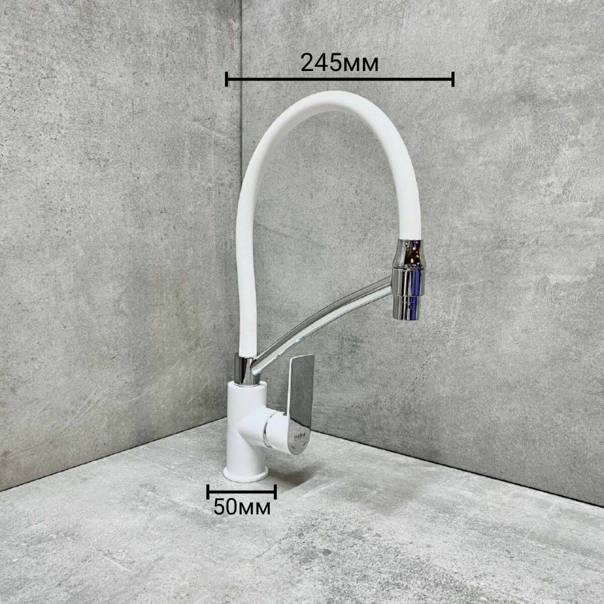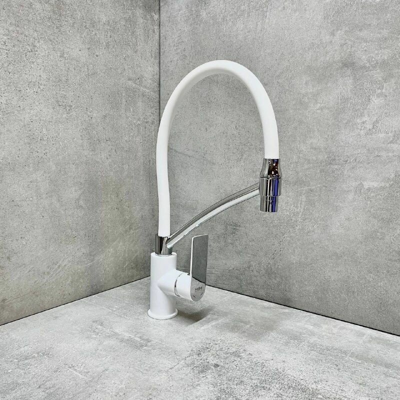Смеситель для кухни Haiba HB72505-8 с гибким, поворотным, силиконовым изливом, материал: латунь, цвет: белый-хром.