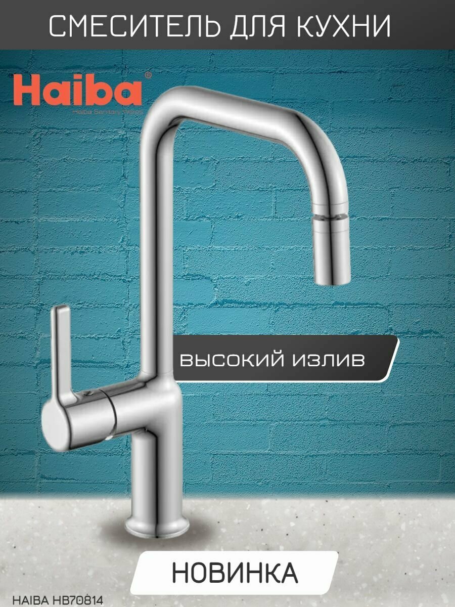 Смеситель для кухни Haiba HB70814, высокий, поворотный излив, материал: латунь, покрытие: хром