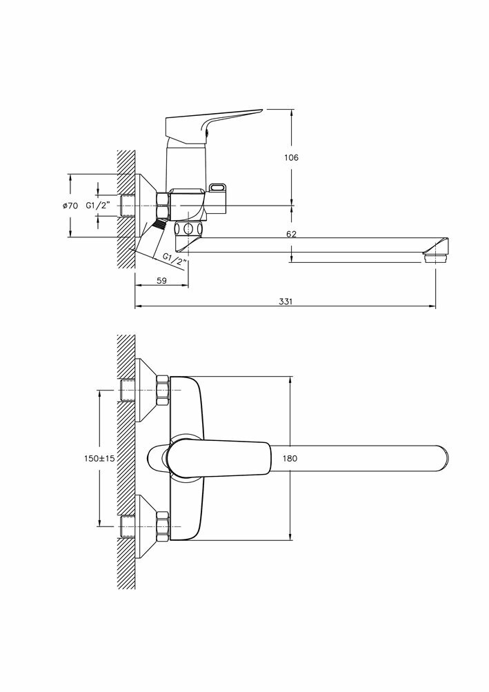Смеситель для ванны Haiba с длинным изливом HB22506