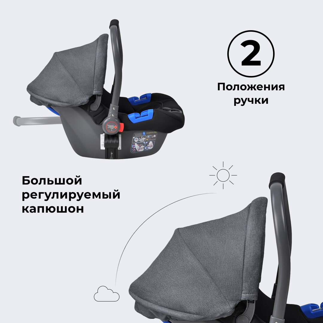 | Опции | поддержка головы новорожденного / защита от боковых ударов / округлое качающееся основание / возможность установки на шасси / положение для сна |