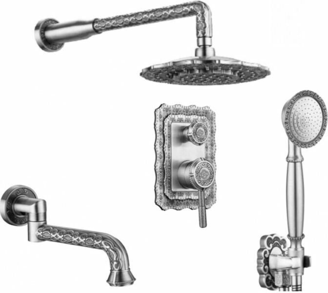 Душевая стойка Zorg Antic A 104DS-SL встраиваемая, латунь серебро, с орнаментом, с тропическим душем