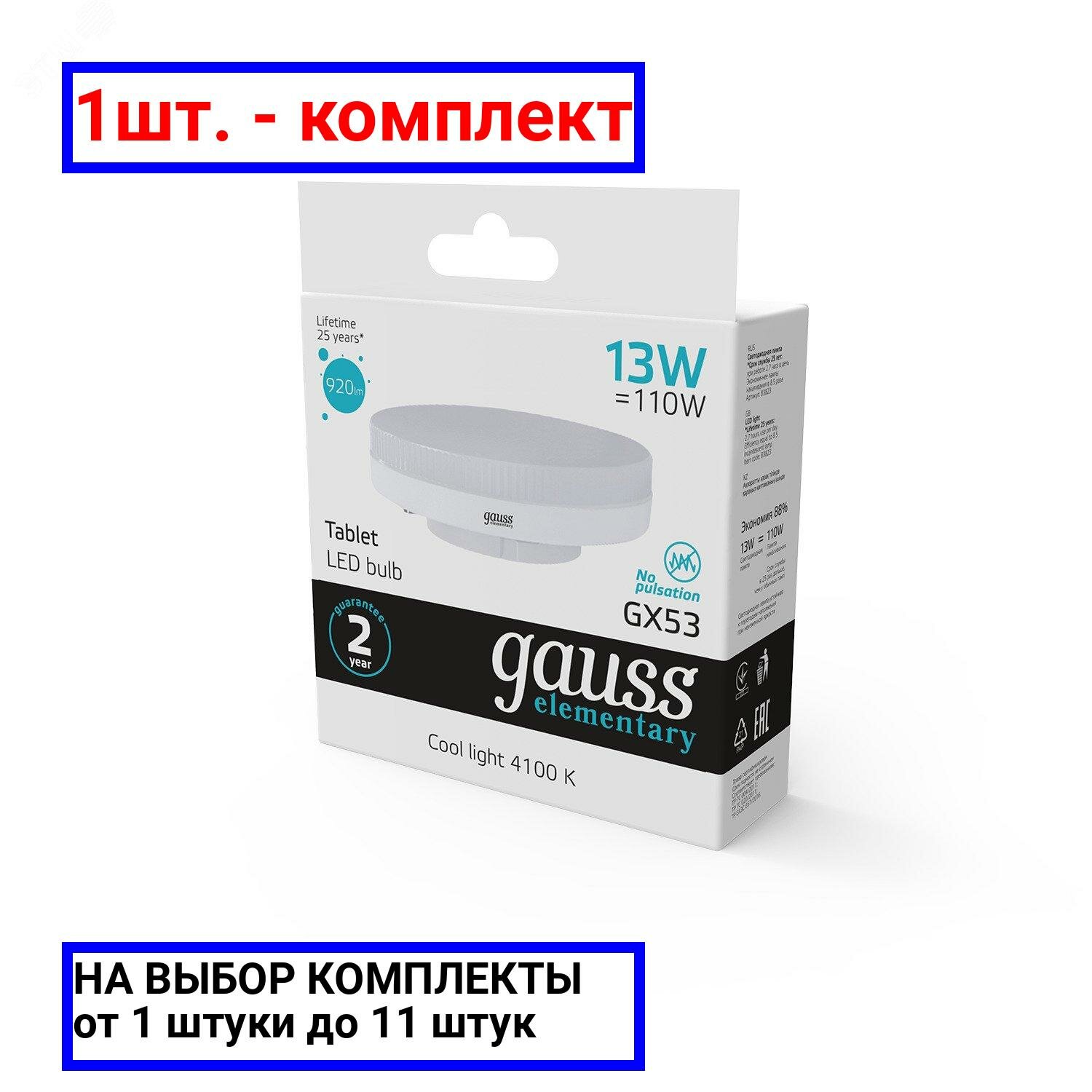 Лампа Gauss Elementary GX53 13W 920lm 4100K LED 1/10/100