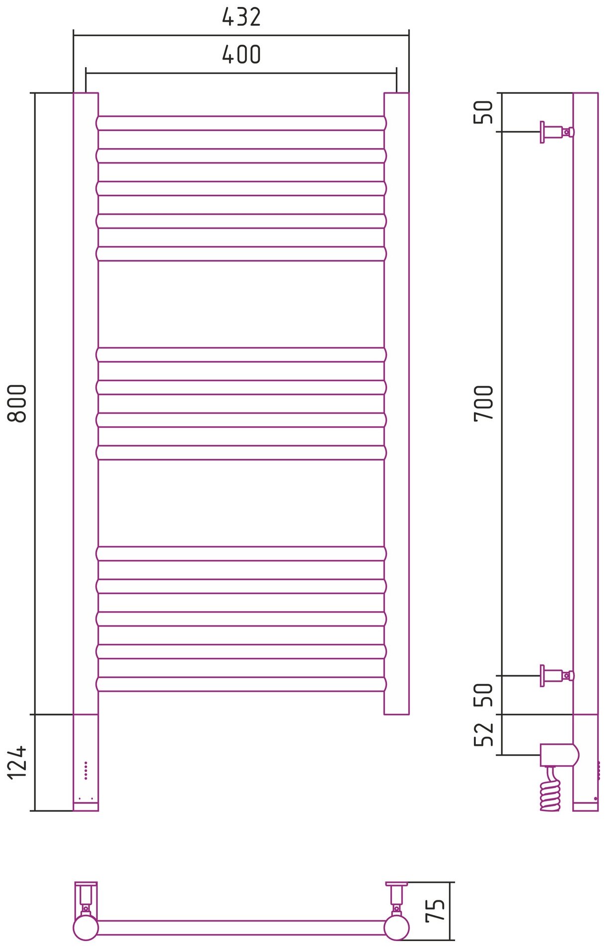 Электрический полотенцесушитель Сунержа Богема 3.0 прямая 800х400 лтэн без покрытия