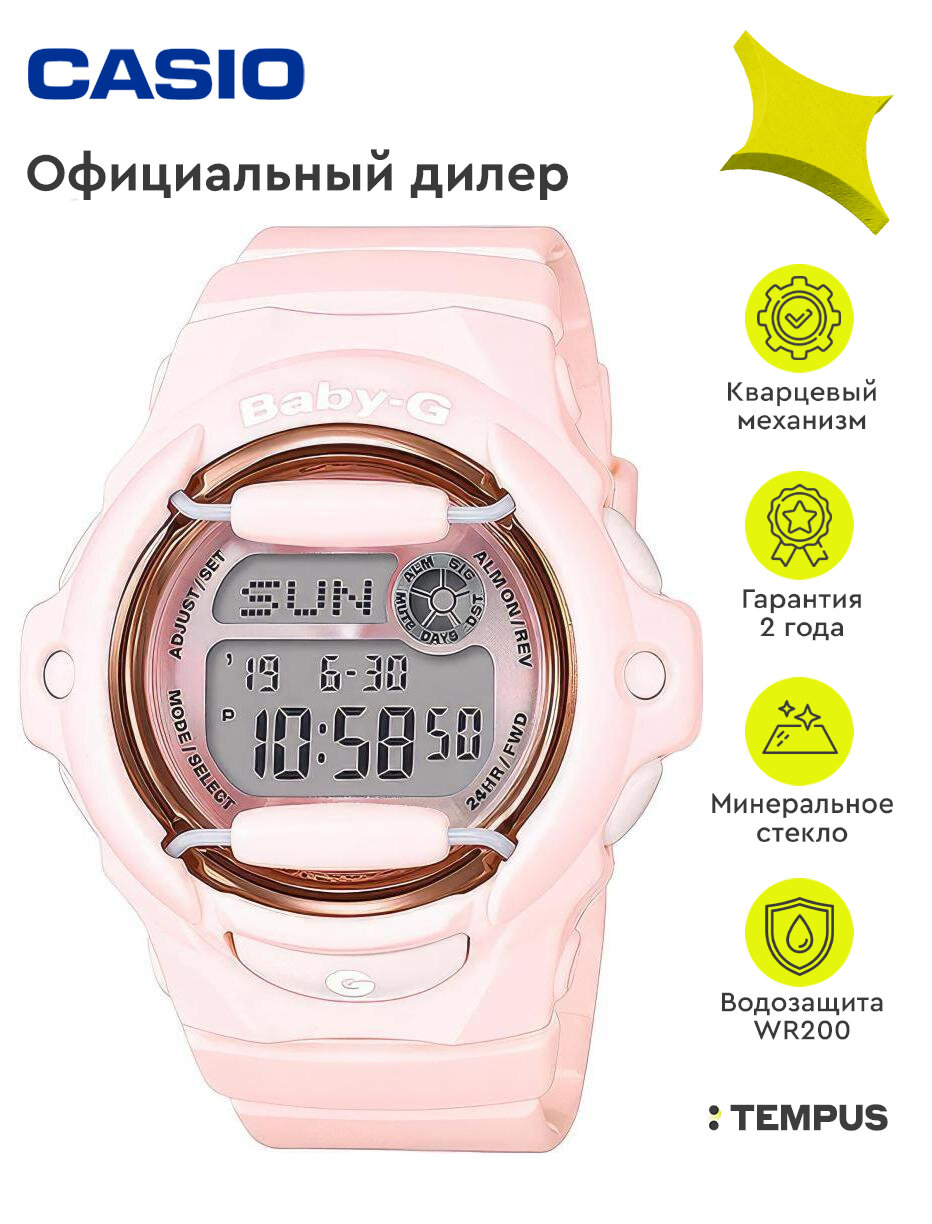Наручные часы CASIO BG-169G-4B женские, кварцевые, будильник, записная книжка, хронограф, секундомер, таймер обратного отсчета, водонепроницаемые, противоударные, подсветка дисплея, розовый