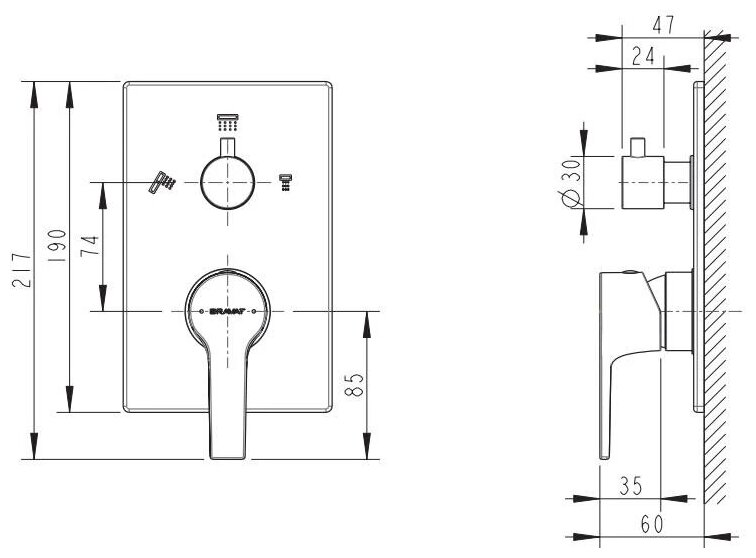 Allen Brau Смеситель Bravat Prolate P69218CP-3-ENG для ванны с душем