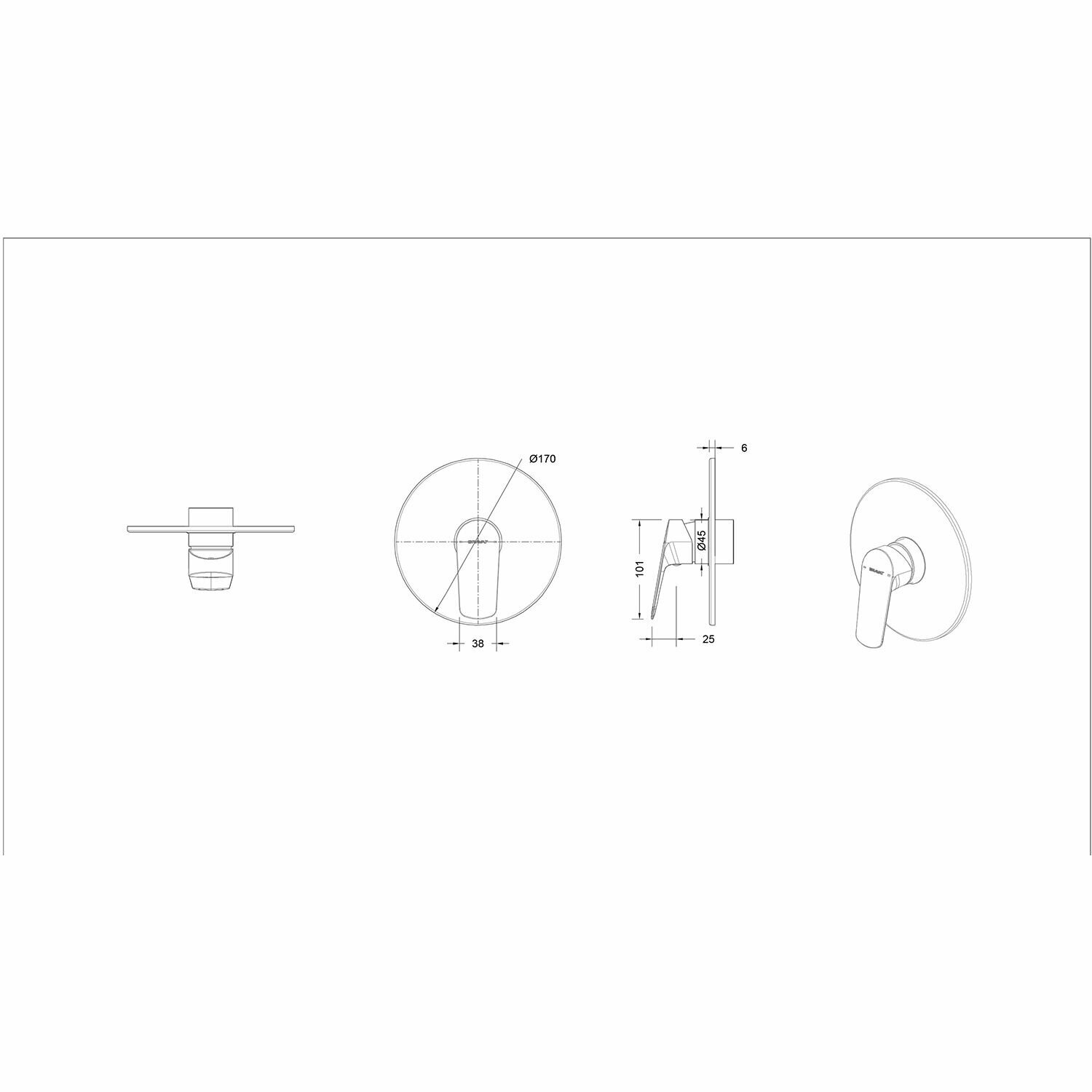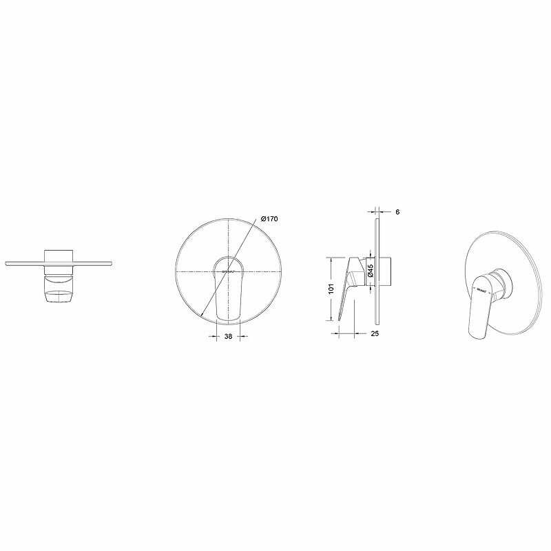 Смеситель для душа Bravat Rhein внешняя часть для D999CP-ENG, хром (PB8429564CP-ENG)