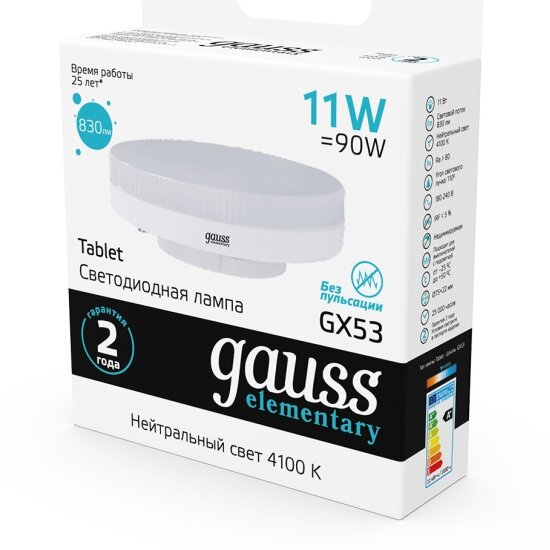 (2 шт)Лампа Gauss Elementary GX53 11W 830lm 4100K LED 1/10/100