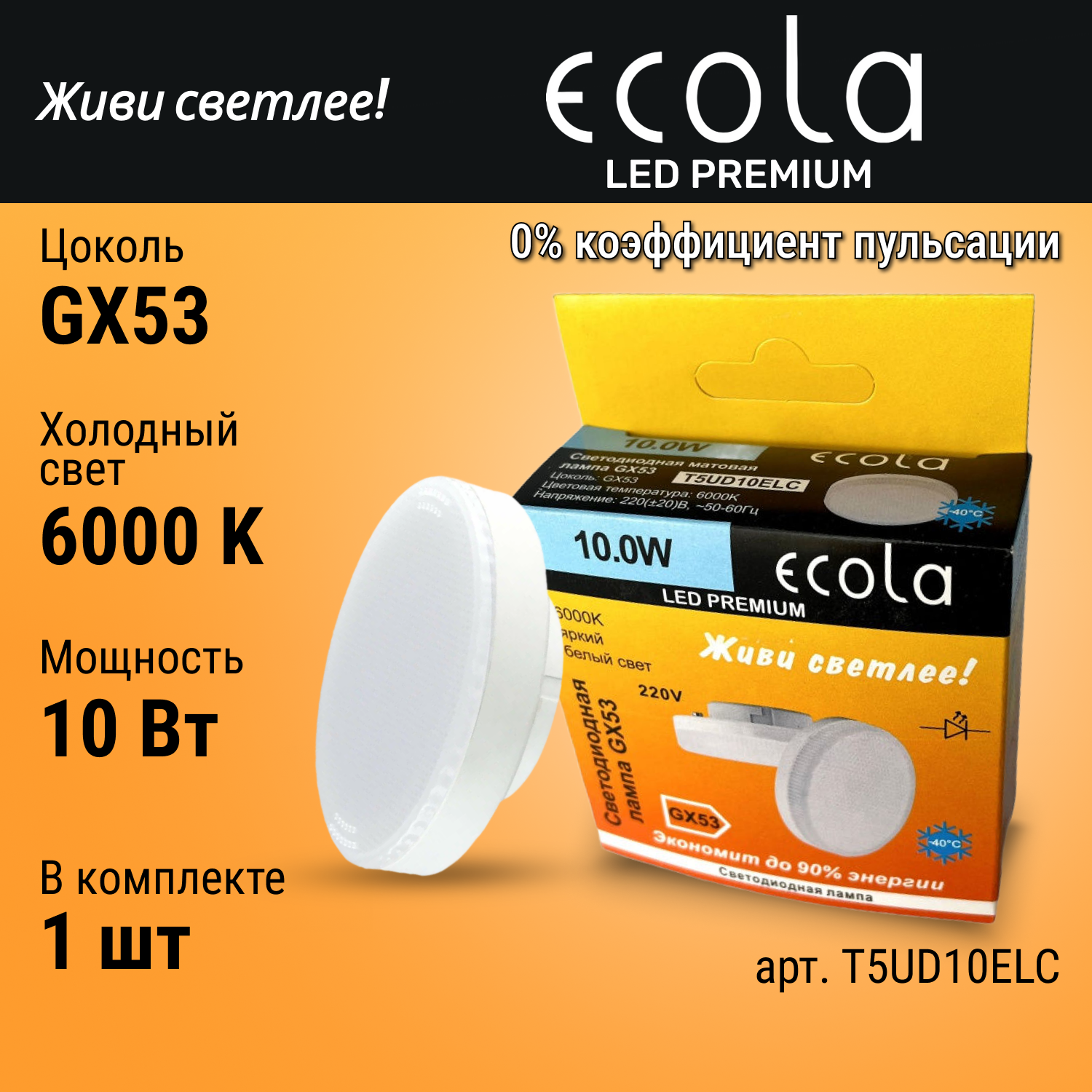 Ecola GX53 LED Premium 10,0W Tablet 220V 6000K матовая 27x75 T5UD10ELC