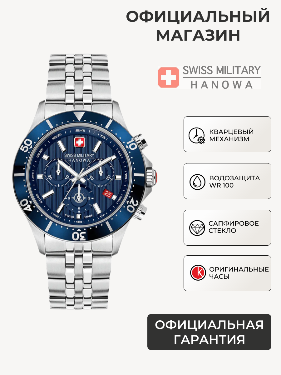 Наручные часы Swiss Military Hanowa Наручные часы Swiss Military Hanowa Land Flagship X Chrono, серебряный, синий