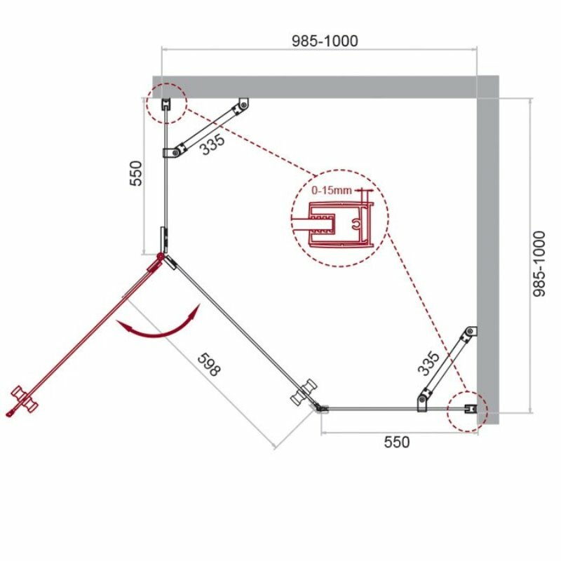 Душевой уголок BelBagno Kraft, 100 х 100 х 195 см, стекло прозрачное, профиль хром, левый, KRAFT-P-1-100-C-Cr-L