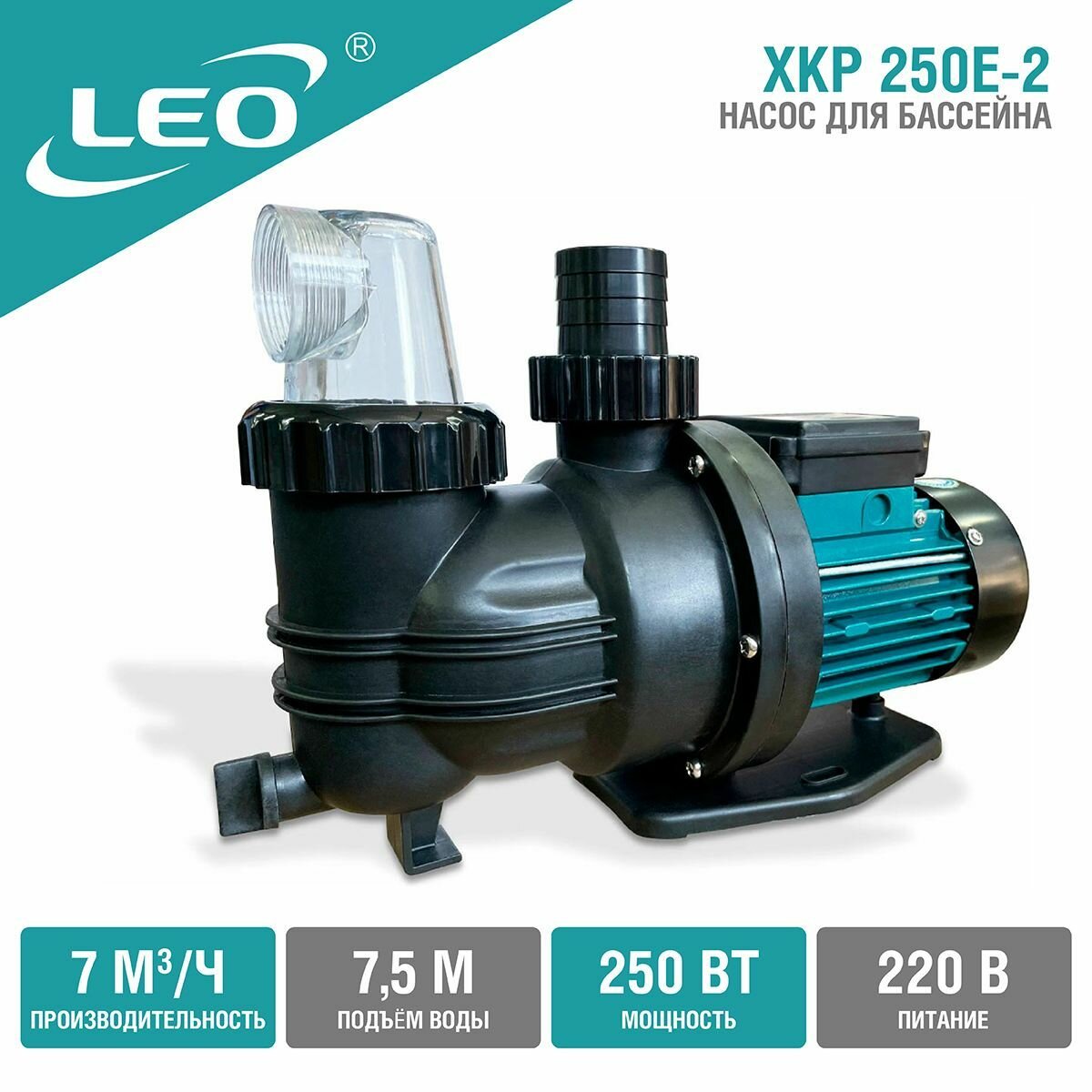Насос для бассейна Leo XKP250-Е2 | Мощность 250 Вт. / Максимальная производительность 115 л/ мин.
