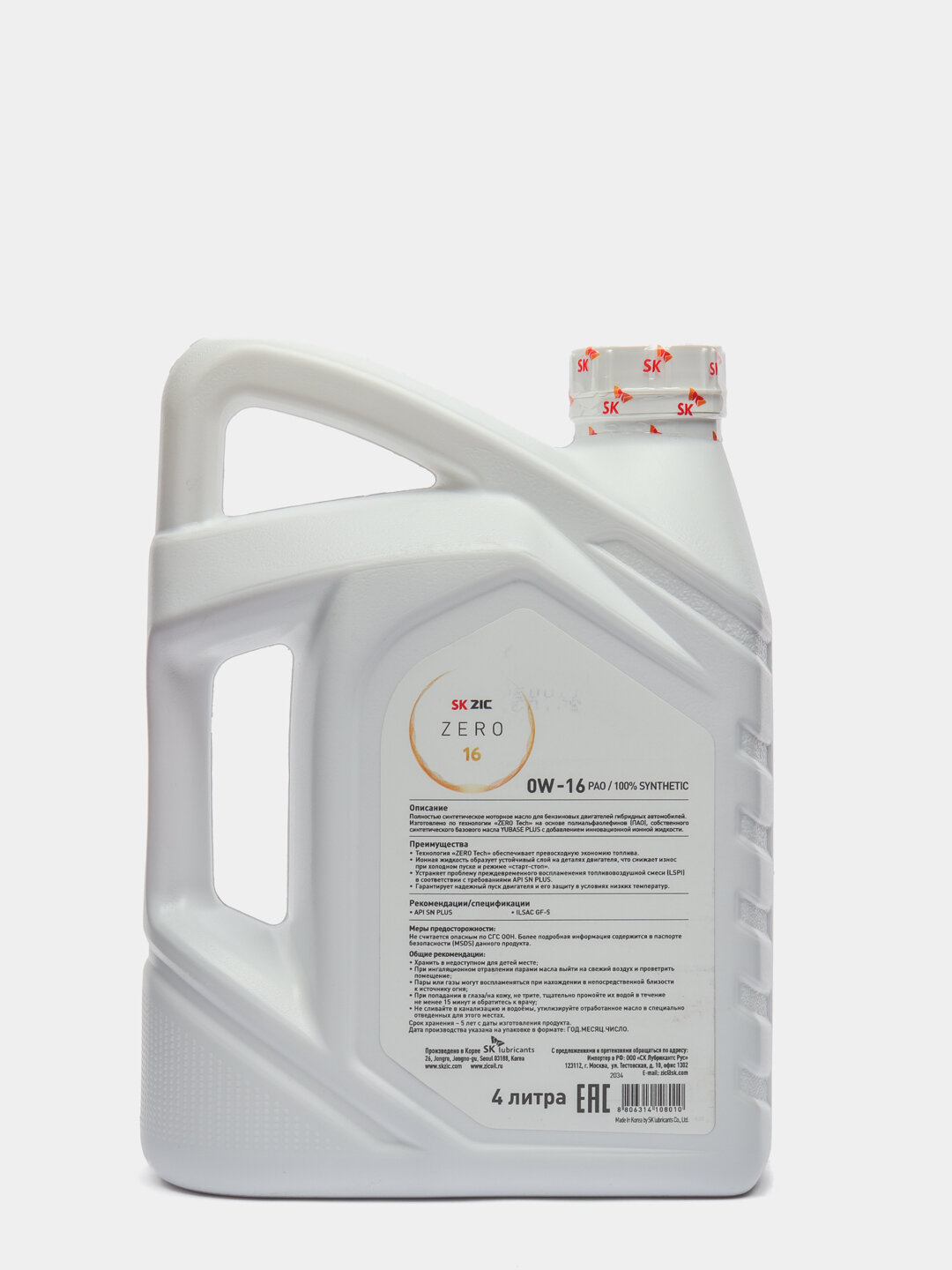 Купить Синтетическое моторное масло ZIC Zero 0W-16, 4 л, 4 кг