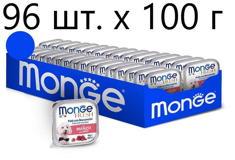 Купить Влажный корм для собак Monge Fresh PATE e BOCCONCINI con MANZO, говядина, 96 шт. х 100 г