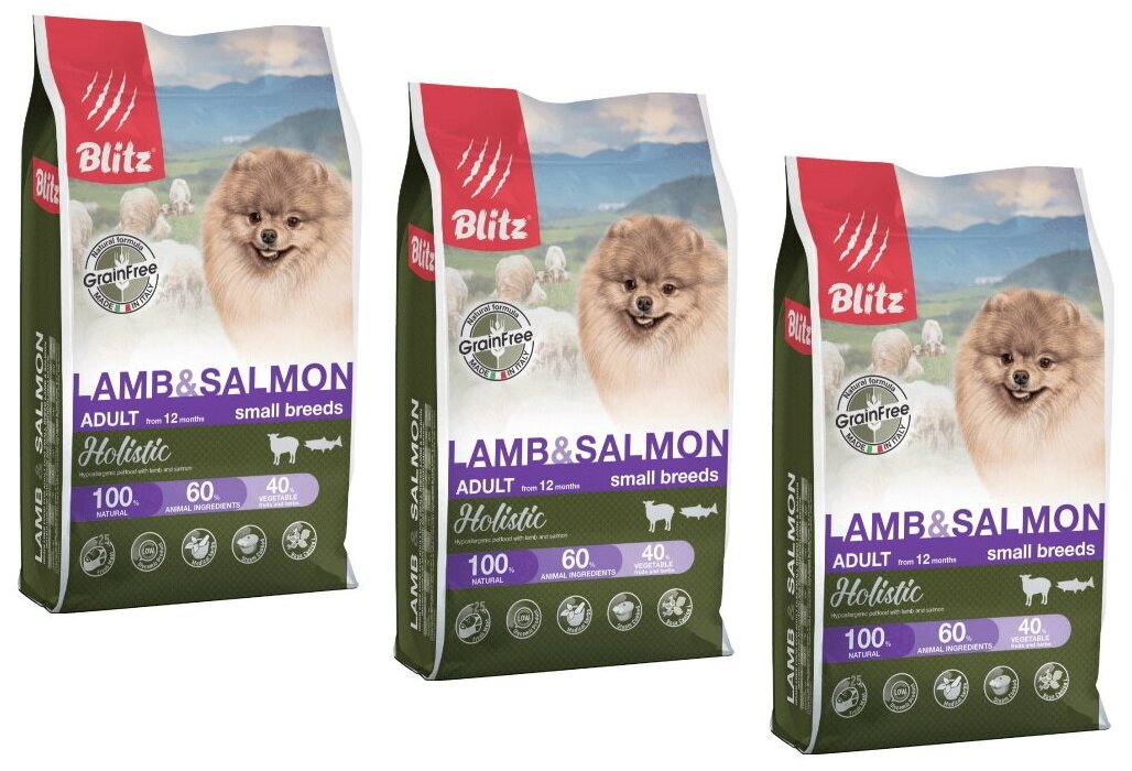 Сухой корм BLITZ к/соб LAMB&SALMON Holistic беззерн. мелк. пород Ягненок&Лосось 0.5кг (3 шт)