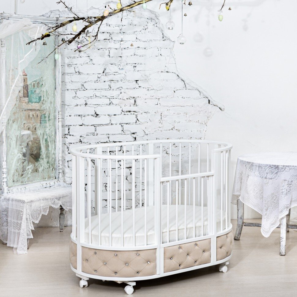 Детская овальная кроватка Островок уюта Eva VIP с маятником - капучино, белый интересное: