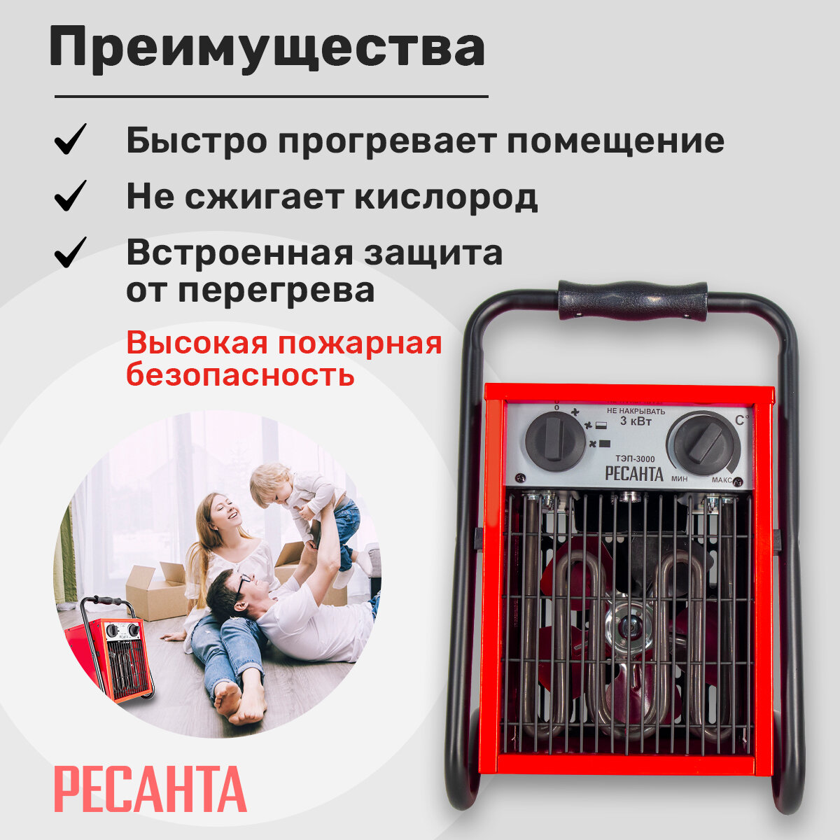 Тепловентилятор РЕСАНТА ТЭП-3000