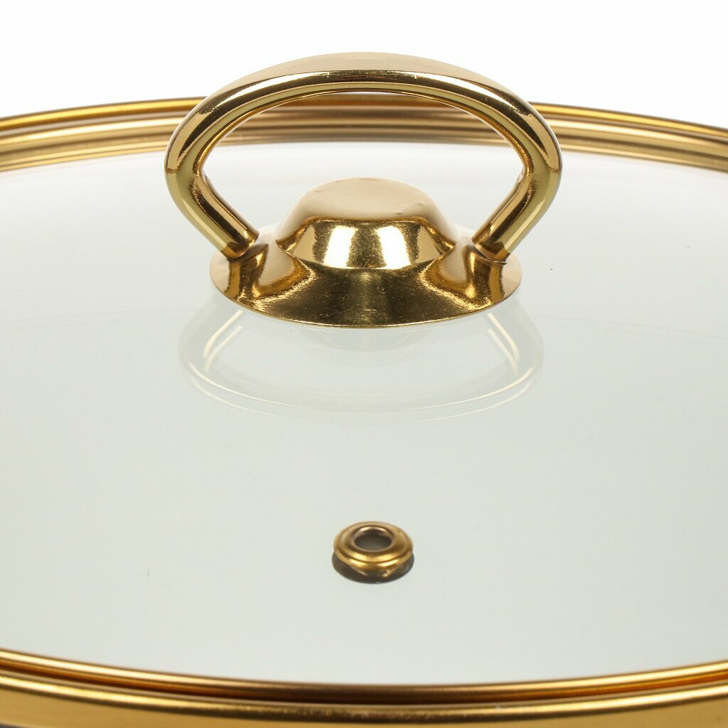 Кастрюля эмалированная сталь, 3.5 л, с крышкой, крышка стекло, ручки золото, круглая, RasheL, Grand, R0222, кремово-розовая, индукция