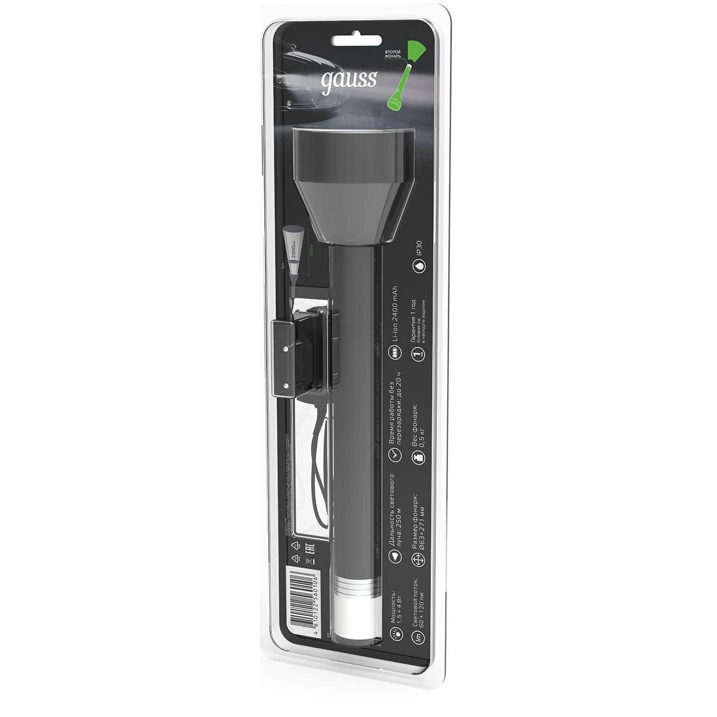Фонарь ручной Gauss модель GFL201 5.5W 180lm Li-ion 2400mAh LED 1/10/40 интересное: