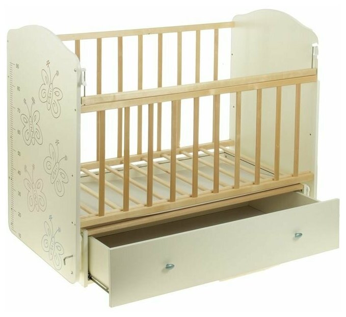 Детская кроватка "Морозко. Бабочки" с ростомером, на маятнике, с ящиком, цвет белый/берёза интересное: