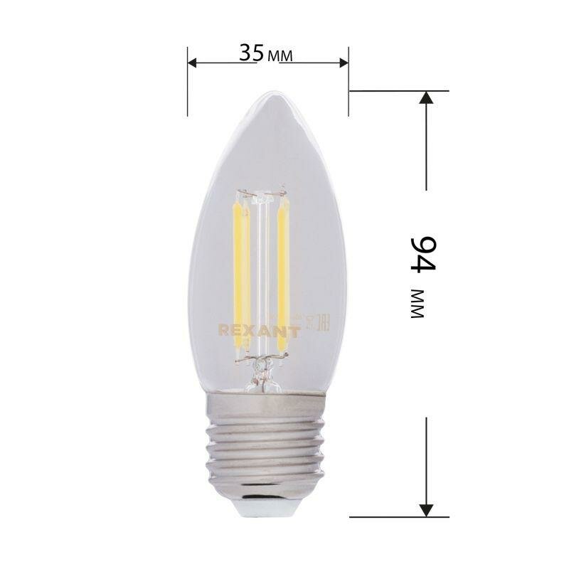 Лампа филаментная Rexant Свеча CN35, 9,5 Вт, 2700 К, Е27, теплый свет интересное: